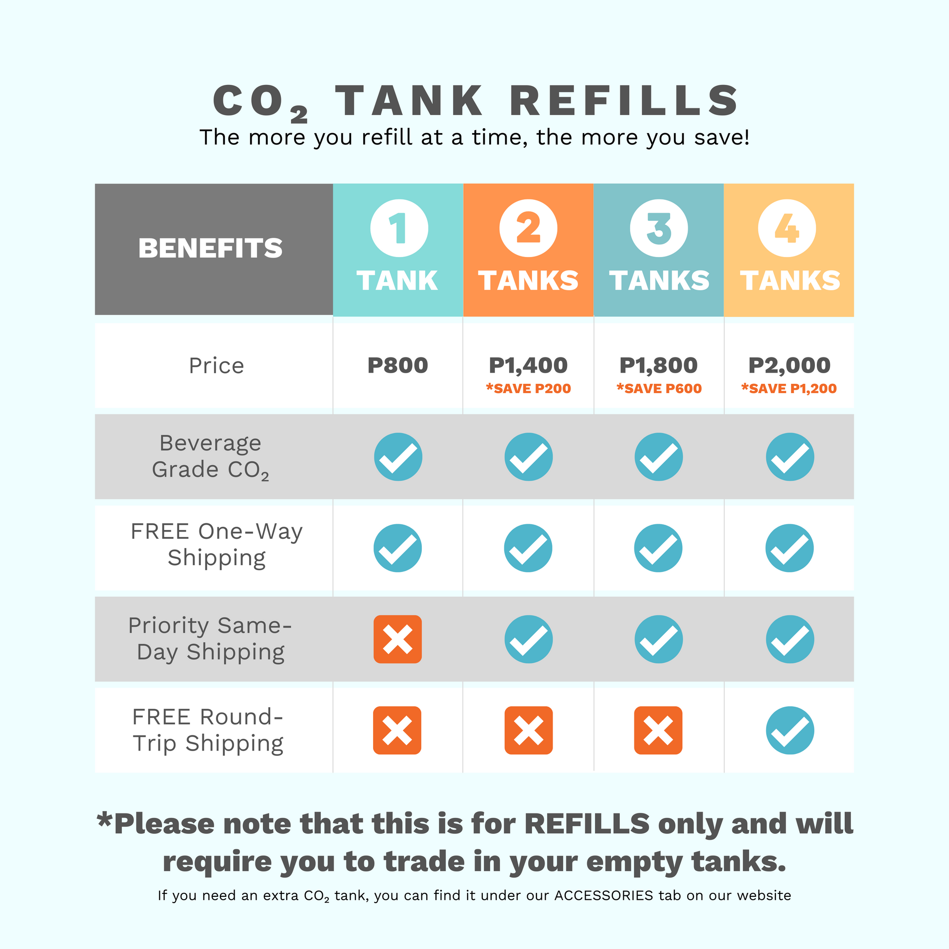 *Note: Please be advised that only Sodarizer provides ONE-WAY free shipping if less than 4 tanks. Shipping of CO2 Tanks to our Drop Off Point is to be shouldered by the customer.